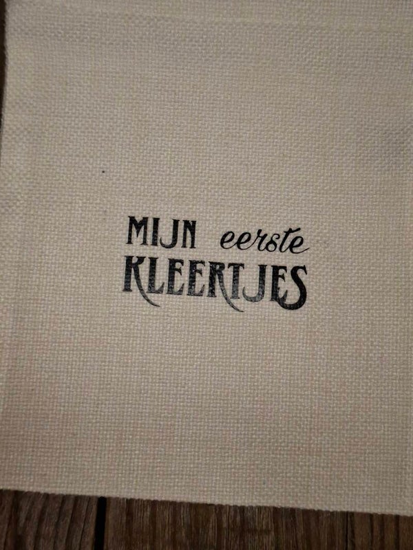 Zakje bedrukt met tekst: Mijn eerste kleertjes